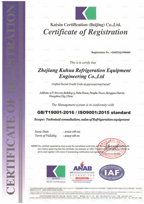 庫華制冷質量管理體系認證